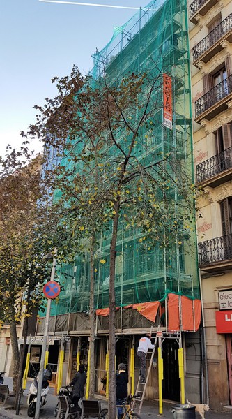 Trabajos de reparación de paramentos, cornisas y carpintería en C/ Enric Granados, 113 (Barcelona)