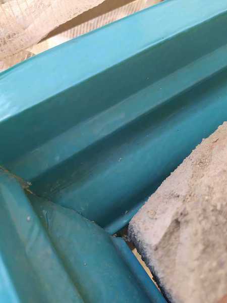 fluido para encofrados Webertec GROUT 600. Vierteaguas cerámico nuevo y pátina al siloxano.