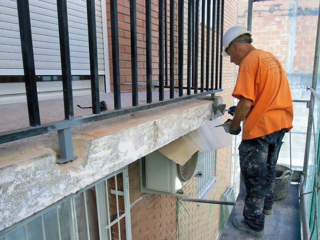 Trabajos de rehabilitación de todos los cantos de forjado de la fachada debido a la deficiente disposición y mantenimiento de los anclajes