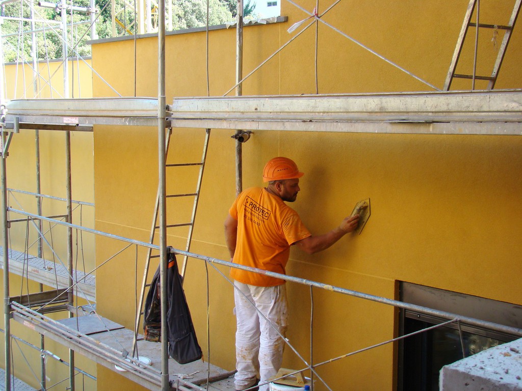 Aplicación de la terminación del sistema, en esta ocasión con mortero acrílico impermeable acabado fratasado fino