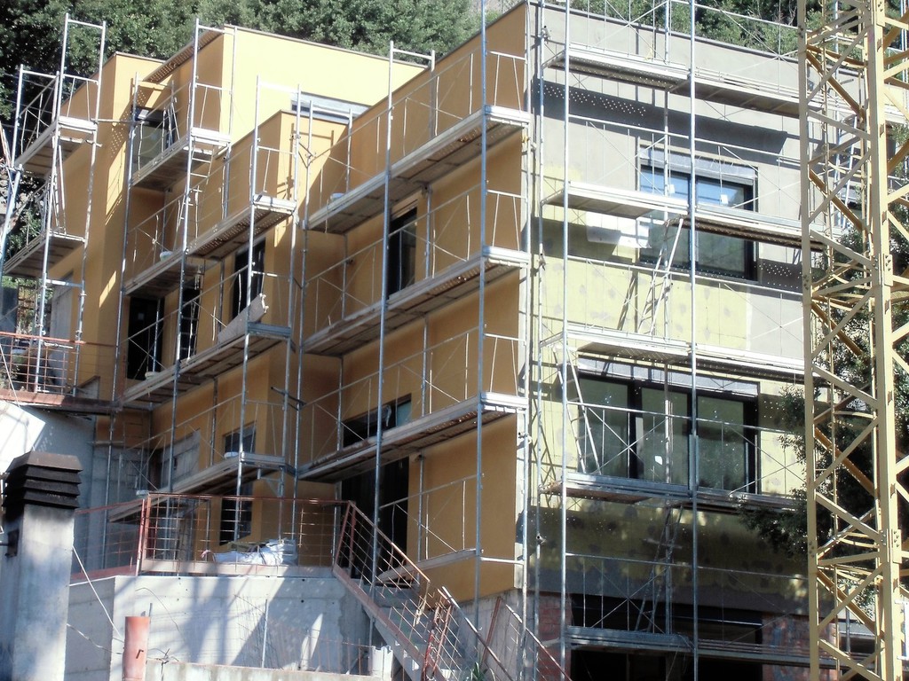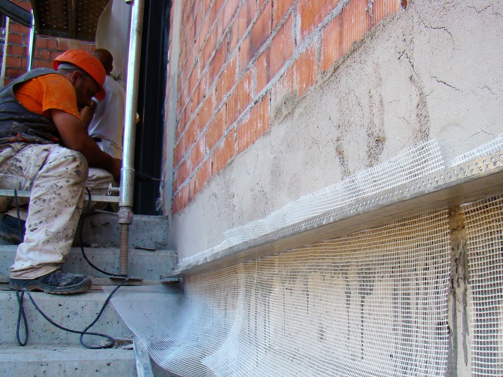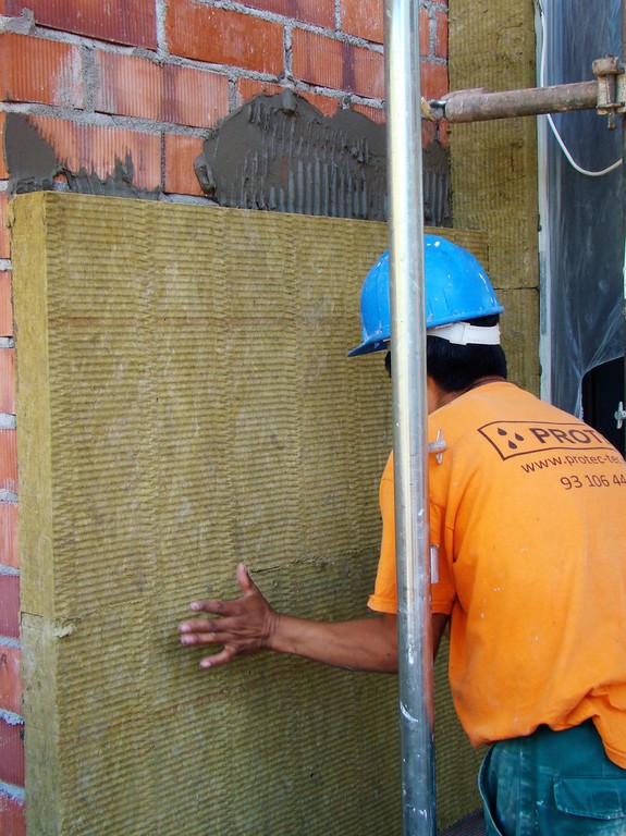 Aplicación del sistema SATE en obra nueva con aislamiento tèrmico de lana de roca de 80mm de espesor y terminado con revestimiento de
